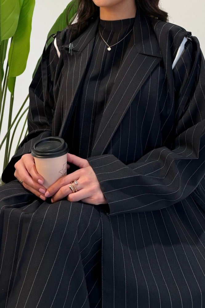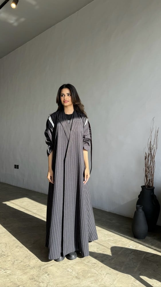 قماش العبايه كتان مبطن مع كريب بالاكمام وطرحه شيفون